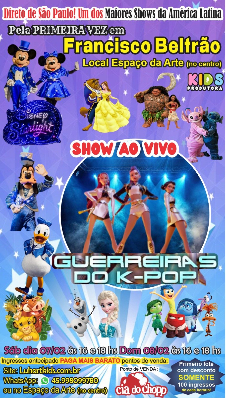 | Ingresso Luhart Kids| Disney Starlight| Francisco Beltrão – PR | 08/02/2026 – Domingo 2ª Sessão 18h00 | R$ 33,00 – R$ 66,00Price range: R$ 33,00 through R$ 66,00 → Incluso taxa de compra online |